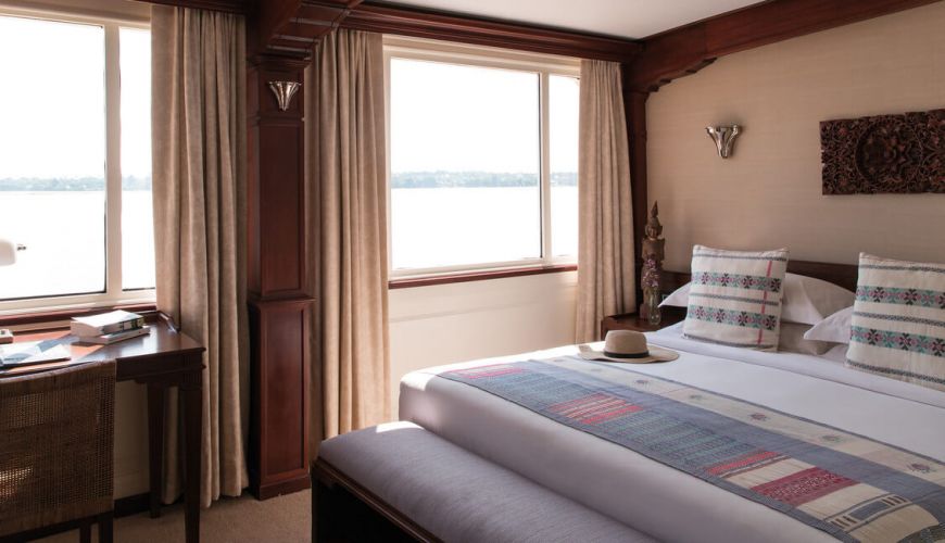 Die Belmond Road to Mandalay bietet 4 Superior Kabine mit einer Fläche von jeweils 11 m². Das Zimmer verfügt über zwei Betten und ist mit traditionellen Seiden im Burmesischen Stil eingerichtet. Das große Fenster bietet einen fantastischen Blick auf den Fluss. Alles bietet das beste Entspannungsgefühl für die Passagiere.