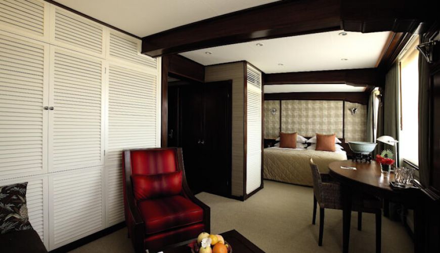 Das Belmond Road to Mandalay bietet eine Governor Suite mit einer Fläche von 29 m², Doppelbett / Zwei Einzelbetten. Die Suite bringt das Beste von Belmond mit seiner besten Unterkunft zum Ausdruck. Die Suite verfügt über außergewöhnliche geräumige Ruheräume, darunter ein getrenntes Wohnzimmer und privatem Butlerservice. Die Gouverneur Suite ist ein wahres Juwel der Belmond Road to Mandalay und wird sogar die anspruchsvollsten Gäste zufrieden stellen.