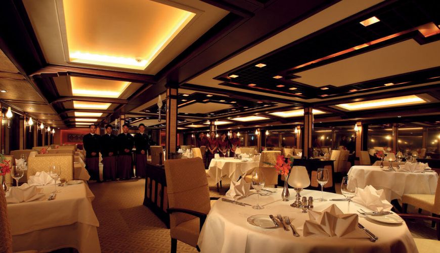 Abends sind Sie herzlich eingeladen, sich mit anderen Gästen, unserem Captain und unseren Offizieren zu einer Cocktailparty auf dem Aussichtsdeck zu treffen. Anschließend genießen Sie Ihr erstes verlockendes Abendessen im Restaurant. Wählen Sie aus einer Auswahl an lokalen Spezialitäten des Küchenchefs und köstlichen gemischten Spezialitäten. Hausweine sind im Preis enthalten, oder Sie wählen eine Flasche aus unserem Weinkeller an Bord.