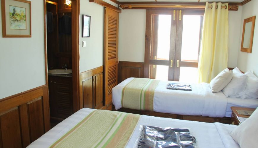 Das Hauptdeck bietet fünf 17 m² große Kabinen mit Doppelbett/Zwei Einzelbette. Das Design des Zimmers folgt dem modernen Architekturstil. Die Zimmer sind klimatisiert und bieten ein entspannendes Gefühl für die Passagiere, einschließlich Panoramafenster welches einen schönen Blick auf den Fluss bieten.